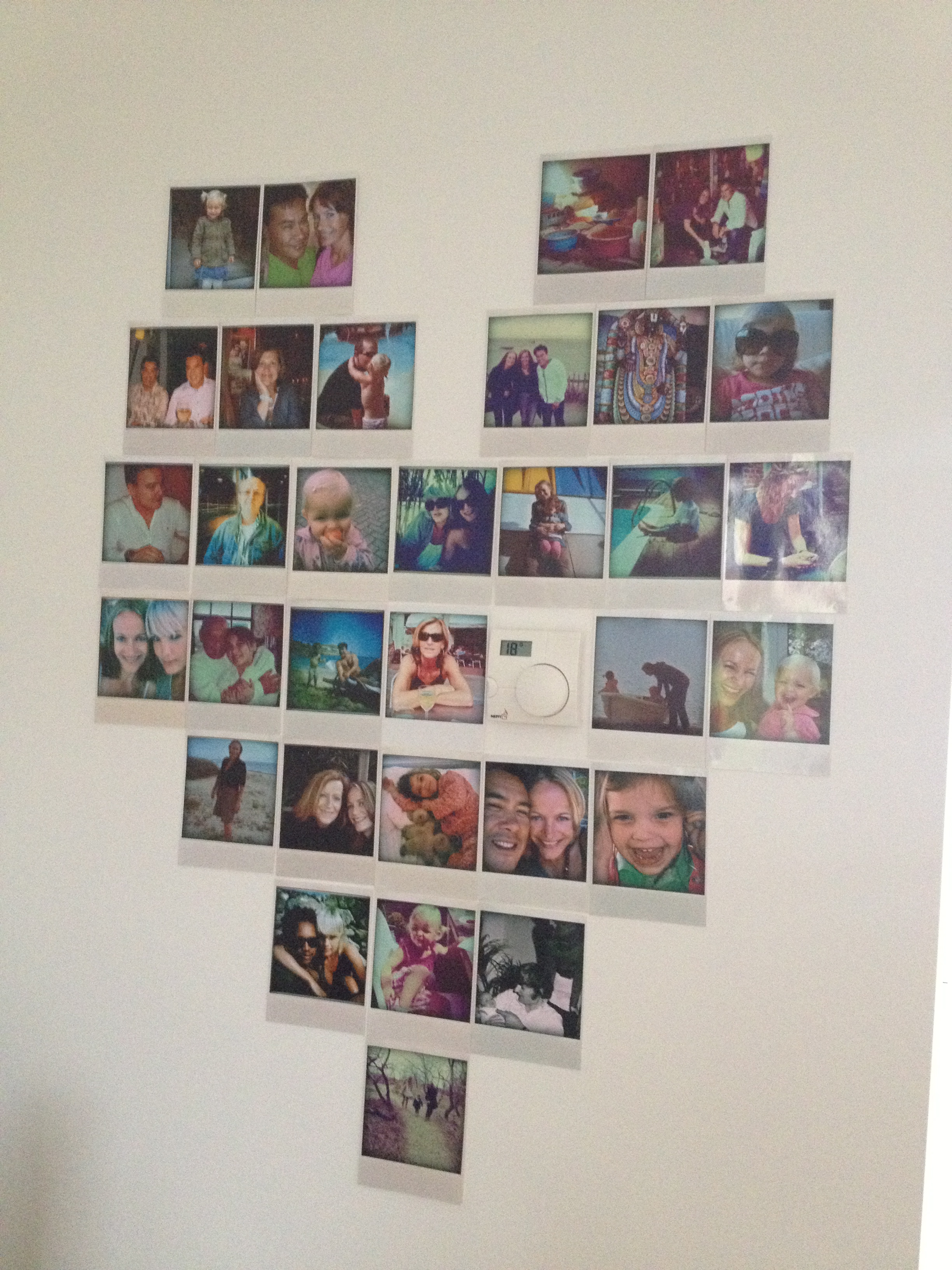 Decorating my wall with a heart of Polaroid photos